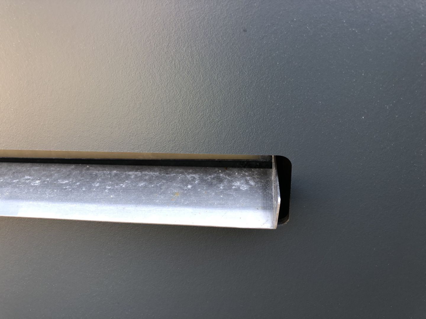Eine kleine Optimierung, die wir zuvor vorgenommen haben, war eine Tropfkante unterhalb der Holz-Sitzfläche im oberen Bereich. Mit einer Alukante kann man verhindern, dass das Regenwasser direkt die verputzte Wand herunter läuft. Dennoch, der reduzierte Pflegeaufwand mit der Schichtstoffplatte war der größte Hebel – und die Wand sieht jetzt ganzjährig edel und gepflegt aus.